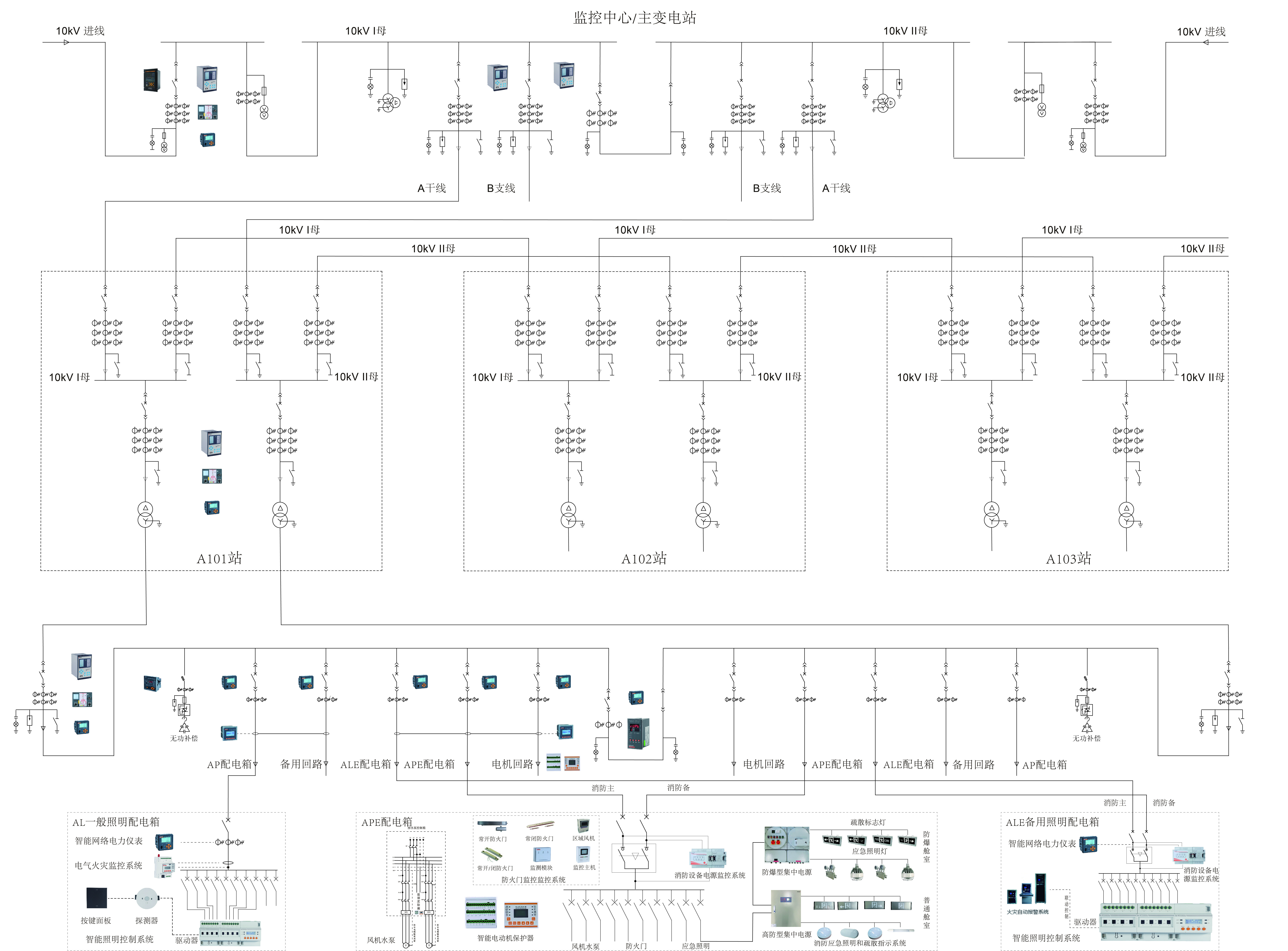 系统人机界面友好,以配电一次图的形式直观显示配电线路的运行状态,实时监测各回路电压、电流、功率、功率因数、电能等电参数信息,动态监视各配电回路断路器、隔离开关、地刀等合分状态、柴油发电机状态、柴油液位、UPS状态、电池信息等,以及有关故障、告警等信号。