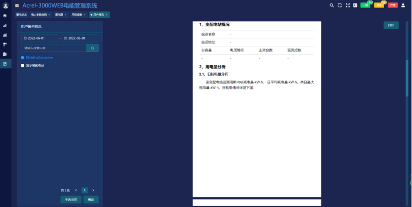 该项目有4个工厂、2个监区、教学楼、会场和2个行政楼、1个变电所共计11栋建筑。需求实时监测用电情况,监测变电站环境状况以及整个监狱的用能状况。