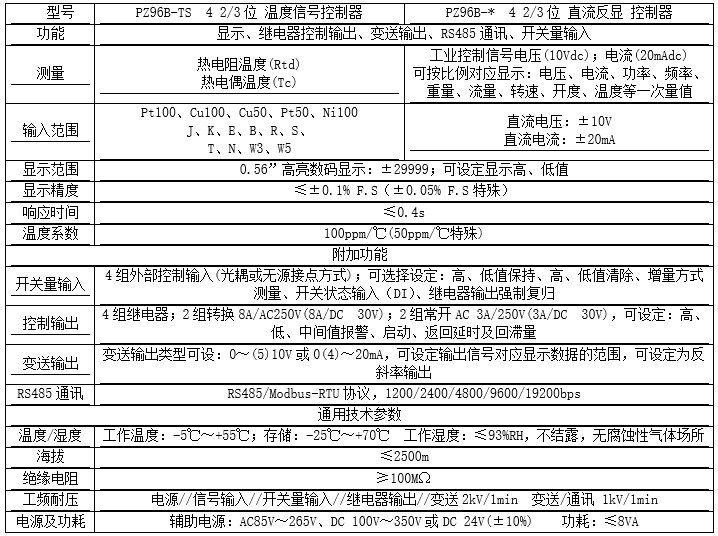 该系列仪表可测量直流电流、直流电压、各种类型热电偶、热电阻、电阻传感器,带DC24V电源输出可给外部两线式变压器直接供电。仪表带有多种可选功能:RS485接口、模拟量输出、开关量输入、继电器报警输出等。