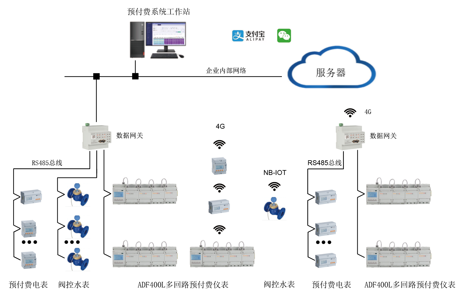 适用于居民区、商业广场、学校、公寓等采用预付费用电模式,电表集中安装,用户不直接接触电表的场合。