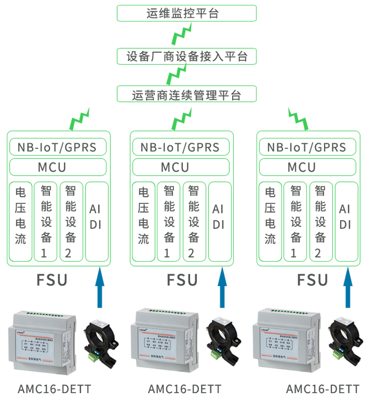 AMC16-DETT 基站直流电能计量模块主要是针对有共享需求,且开关电源无分用户电量计量功能的基站而设计的。仪表可对六个回路的直流电能进行计量,并可为配套的霍尔传感器提供工作电流,同时可通过上位机软件实现零漂校准,具有遥测、遥 信、遥调、实时电量计量、供电质量异常告警、信息存储及处理、信息交互等功能。该模块可分别计量三家运营商的直流用电量,为基站节能改善提供详细的数据依据,为直流配电设备提供分项计量解决方案。