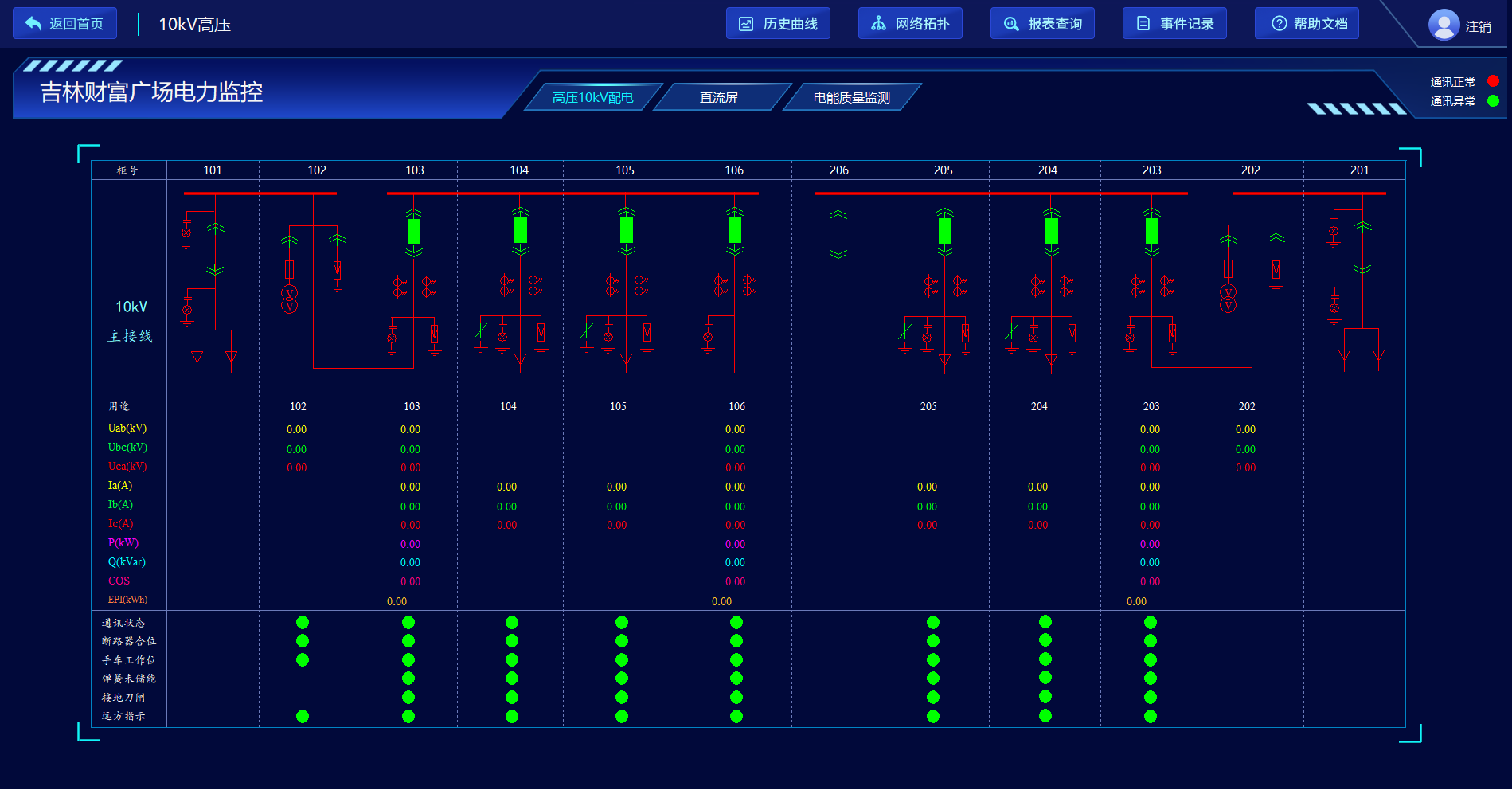 吉林财富购物广场1个高压配电室采集8台安科瑞AM5微机保护;7台安科瑞AMC96-E4微机保护。