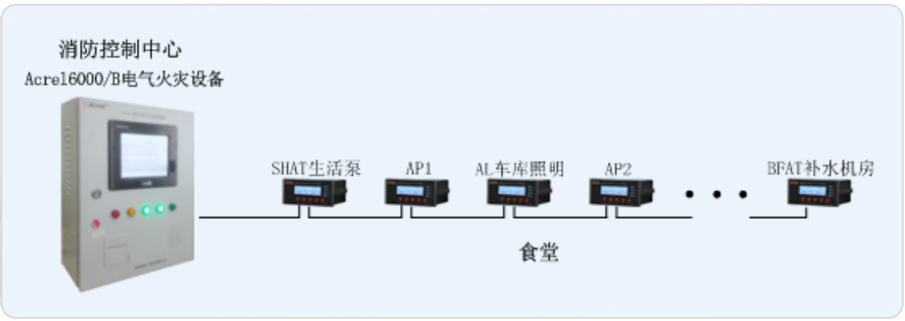新食堂为地上三层、地下一层,占地面积约为2100平方米,地上建筑面积约为6300平方米。我司承接其电气火灾系统的搭建,对安装于食堂楼层配电箱进线处的ARCM200系列剩余电流火灾探测器设计一套Acrel-6000/B电气火灾系统,由此来实时监测楼层内重要回路的漏电流,以确保变电所配电系统的电气安全。